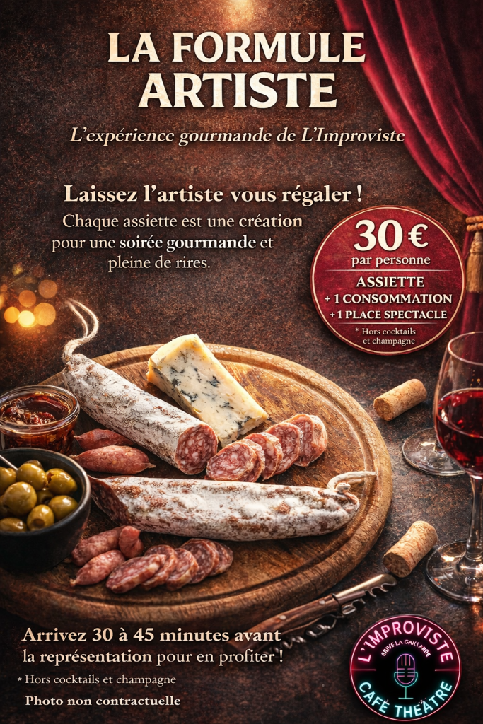 - ❤️ Une Saint-Valentin pas comme les autres à L’ImprovisteUne Saint-Valentin pas comme les autres à L’Improviste Cette année, oubliez le dîner classique et offrez-vous une Saint-Valentin placée sous le signe du spectacle, du partage et de la gourmandise à L’Improviste Café-Théâtre.