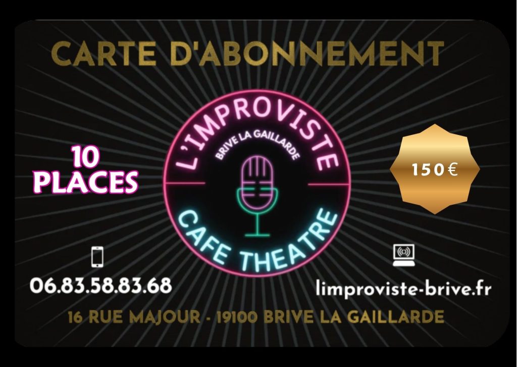 Avec la Carte VIP de L’Improviste Café-Théâtre à Brive, vous accédez à des avantages exclusifs tout au long de l’année et vivez la programmation autrement.