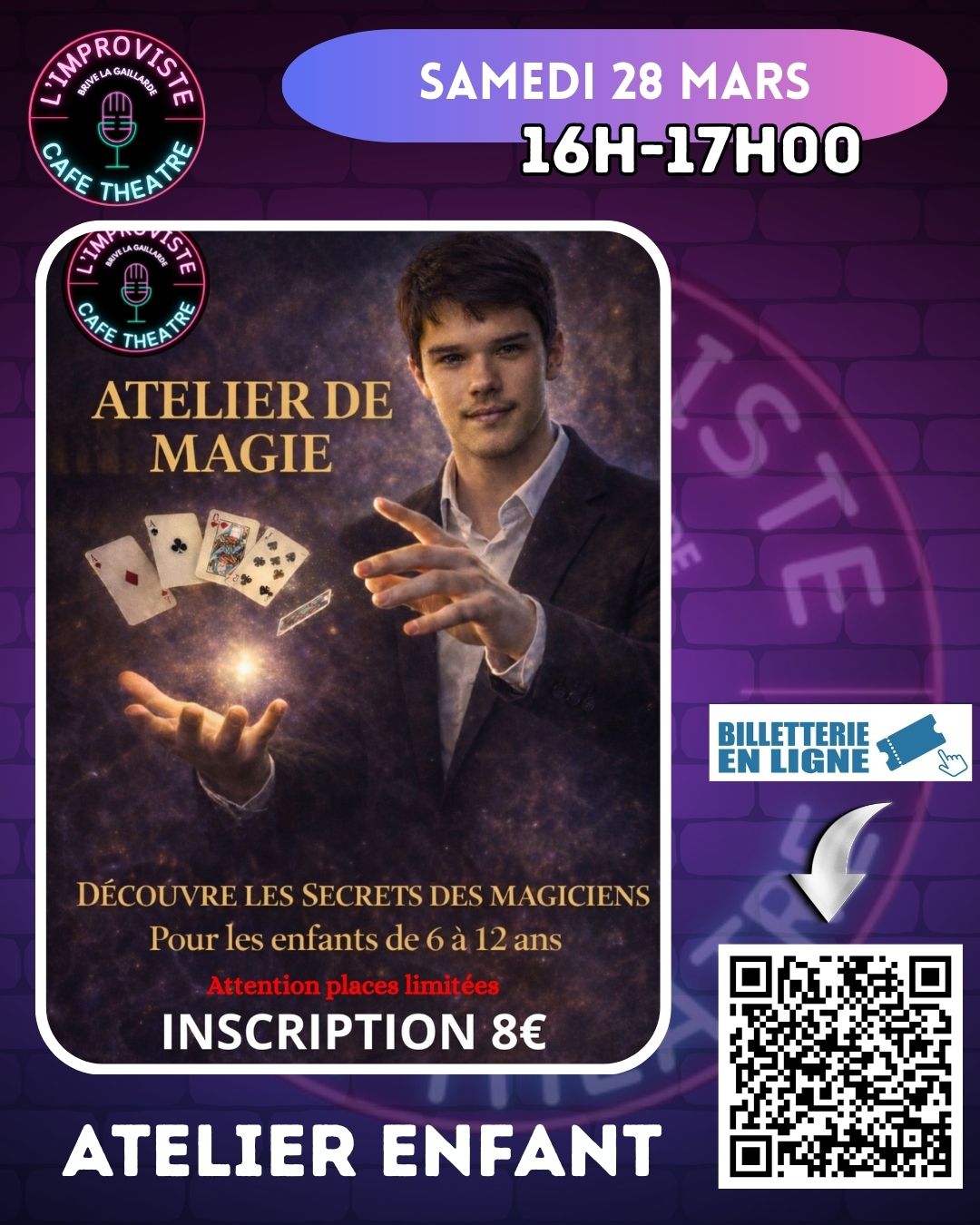 Encadré par Yann, magicien passionné, l’atelier est pensé comme un moment de transmission :