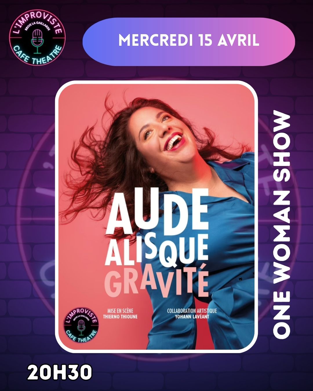 Et pour vous le prouver, Aude Alisque embarque le public dans une heure de fantaisie joyeusement décalée, où même les drames les plus profonds se parent de froufrous.