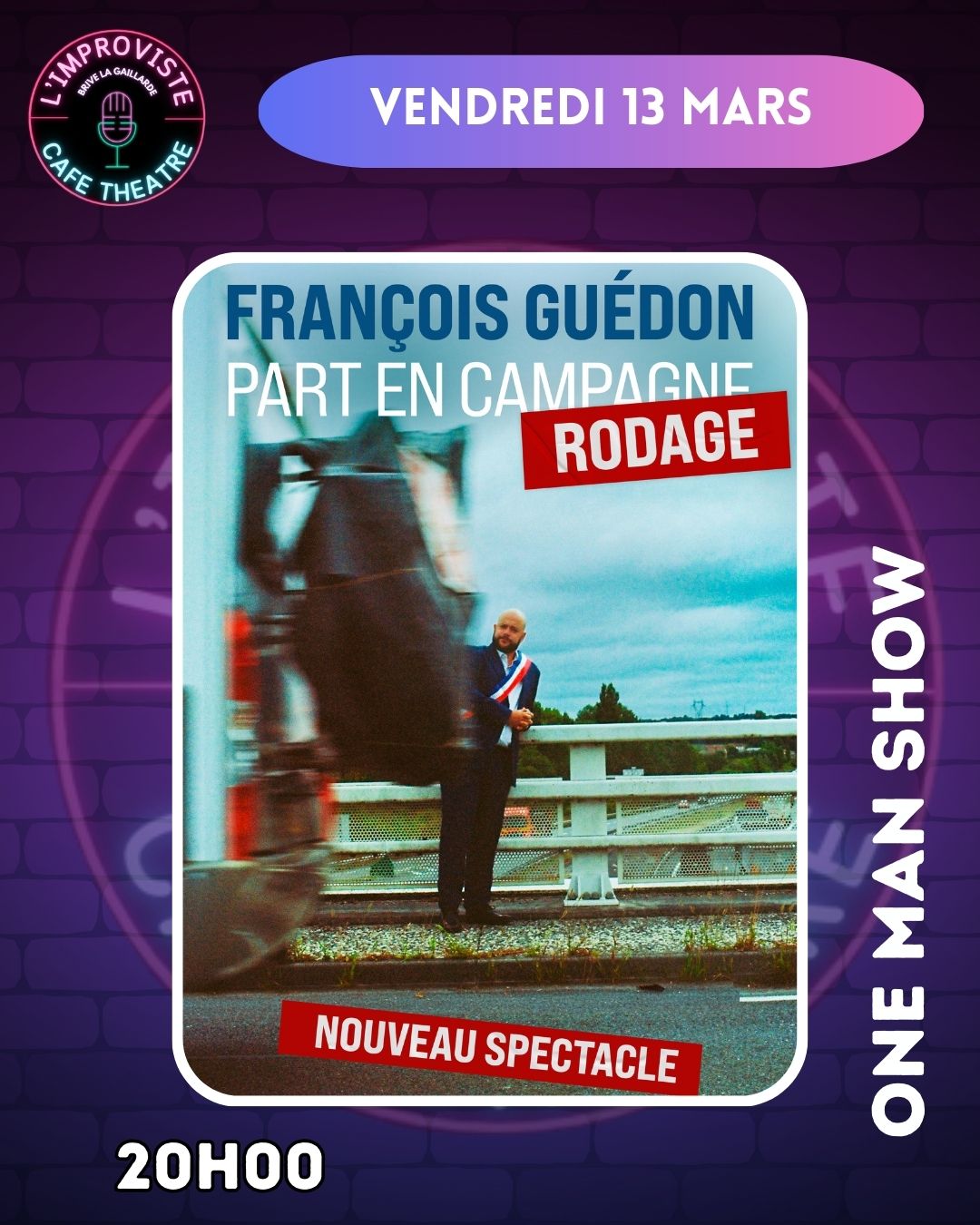 Après “Le Procès Guédon” qu’il a joué à Paris au Palais des Glaces mais aussi partout en France, en Belgique et même en Suisse au prestigieux festival de Montreux, François Guédon revient avec un nouveau spectacle :