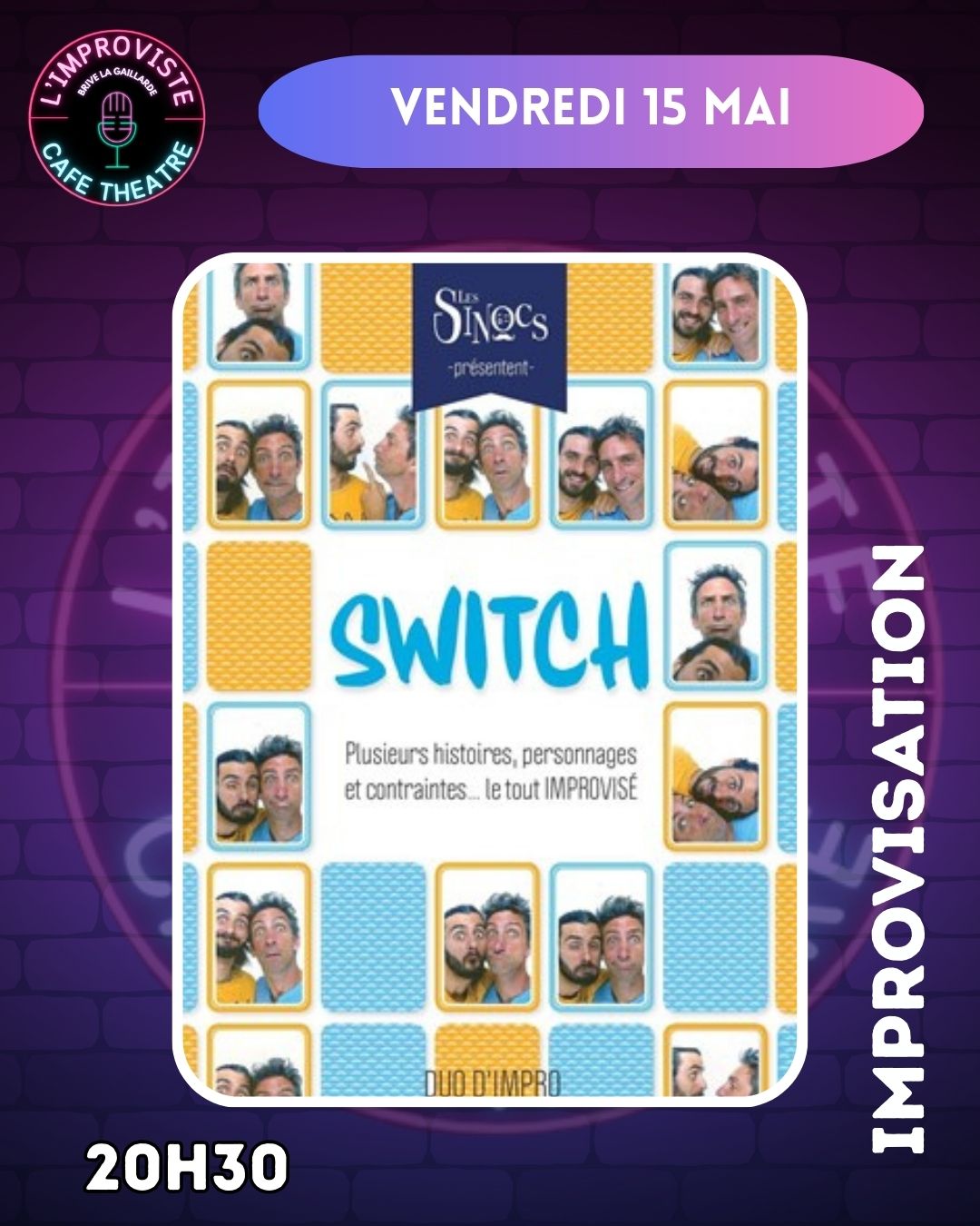 Alors laissez vous emporter par leur énergie et leur répartie et vous aussi devenez, le temps d’une soirée, complètement Sinoc !