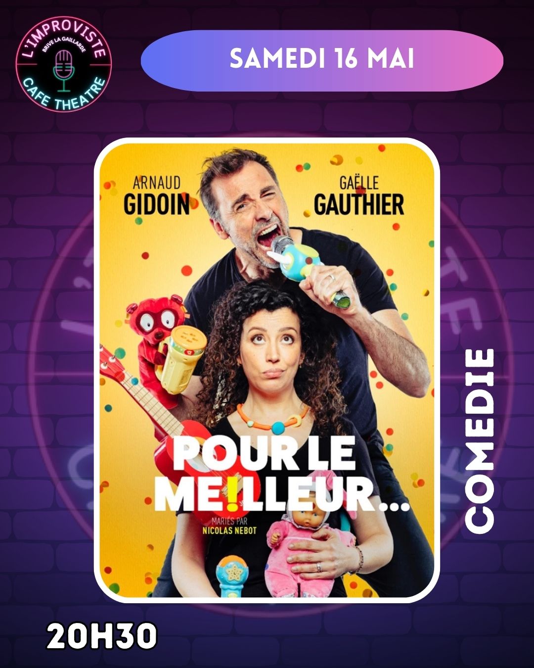 Venez le découvrir dans ce nouveau spectacle hilarant : « Pour le meilleur et pour la suite ! »
